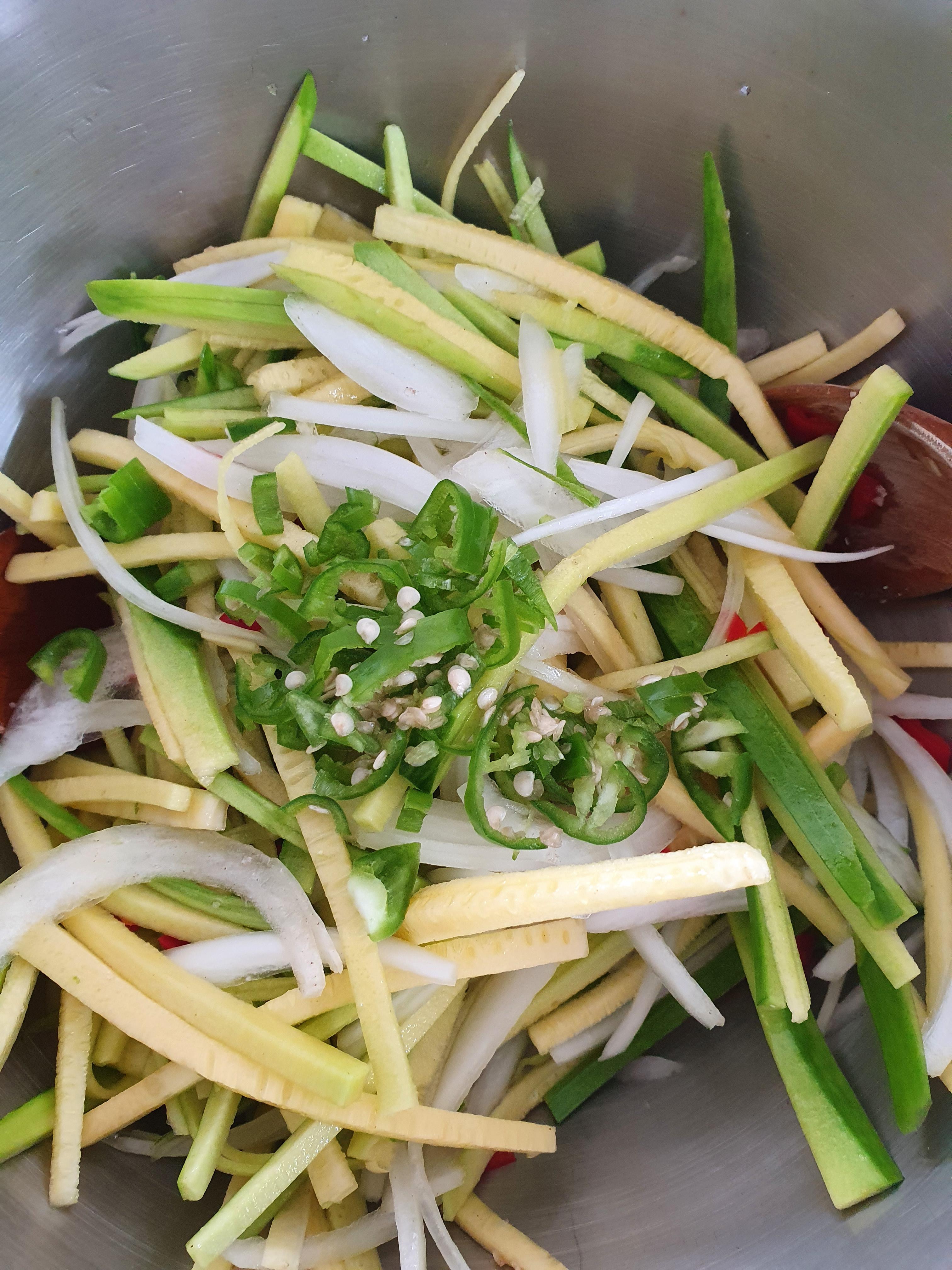 청양고추가 떨어져 급하게 사 오다 보니 사진에는 빠져있네요. 청양고추가 참 필수 사항이니 꼭 채 썰어 준비해 주세요.^^