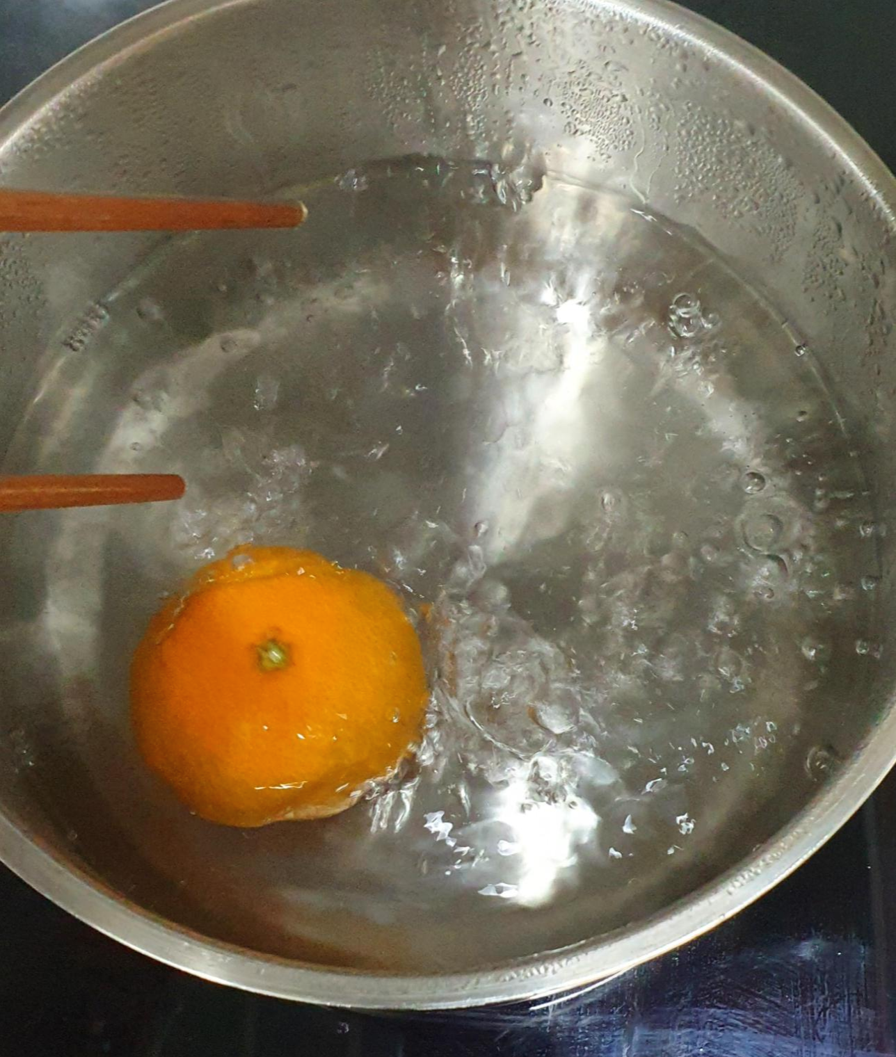 전체 적인 과정은 깨끗하게 베이킹 소다로 씻은 과일을 뜨거운 물에 담가 추가적인 오염을 씻어내고, 바로 찬물에 담가 주는 과정을 진행할 것입니다.