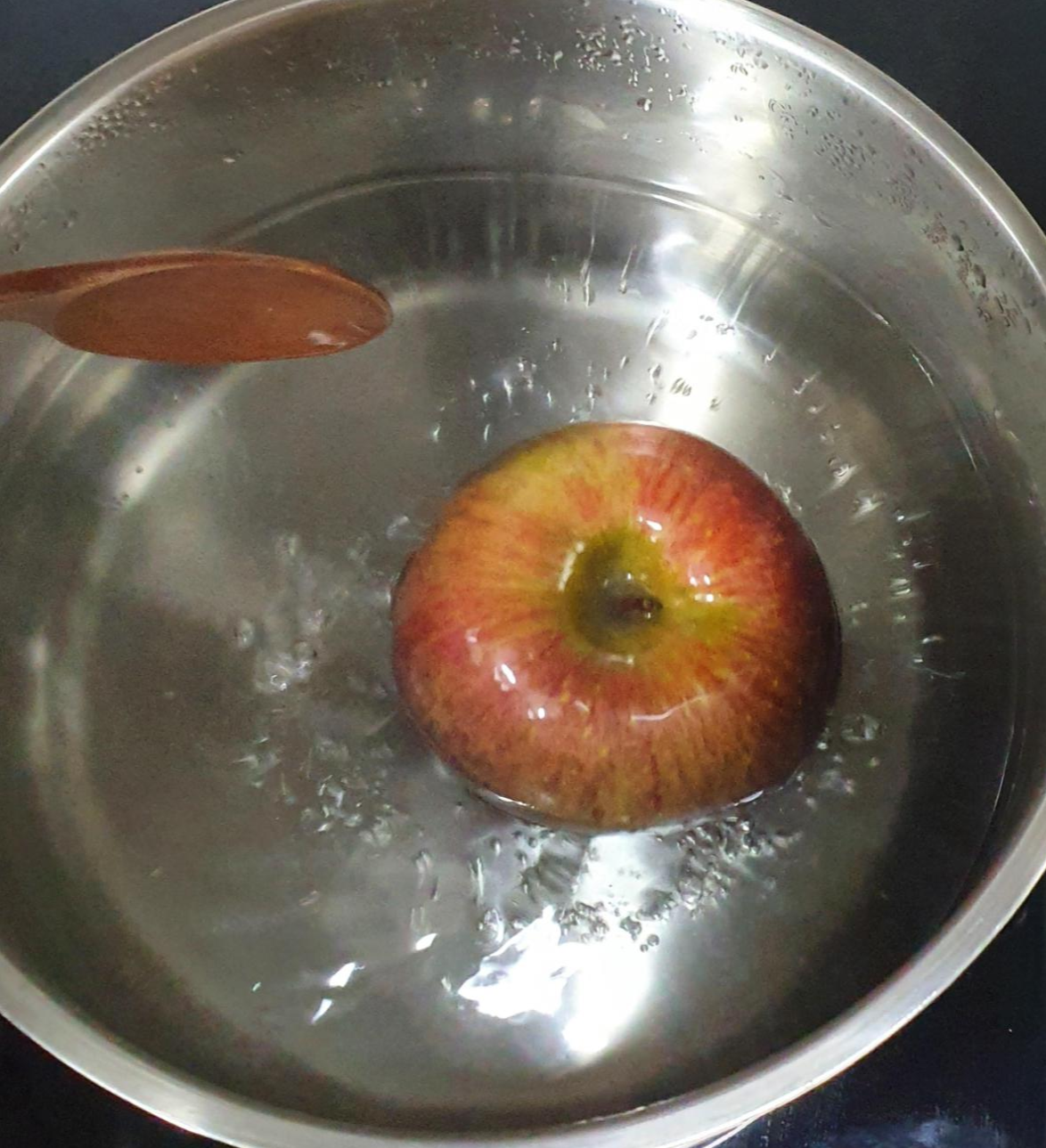 과일을 하나씩 넣어가면서 뜨거운 물에 과일 전체면이 닿도록 돌려가면서 혹시나 모를 불순물을 제거해 주세요.
