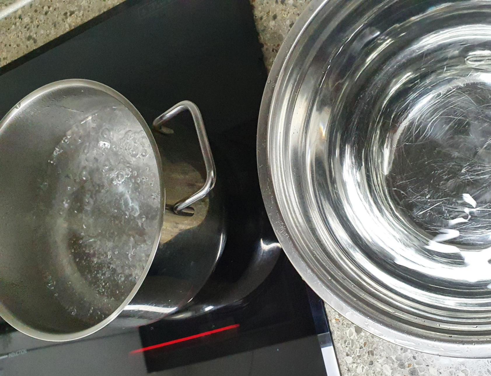 과일을 깨끗하게 씻을 동안 불을 끓여 주시고, 끓는 물 옆에 차가운 물을 같이 준비해 주세요~!